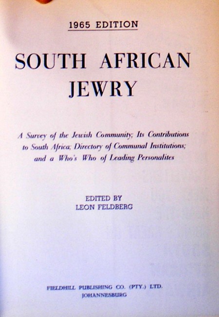 The first comprehensive guide, directory and Who's Who of the South African Jewish Community in the past thirty-five years, the previous one being published in 1929.