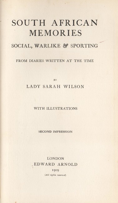 Lady Wilson, sister of Winston Churchill, visited Southern Africa a number of times forming friendships with Rhodes, Jameson, etc. She was described as the 'heroine of Mafeking' and Baden-Powell paid special tribute to her optimism and courage. From Dictionary of South African Biography, volume 3, pages 847/8. ‘The Daily Mail newspaper recruited Lady Sarah after one of its correspondents, Ralph Hellawell, was arrested by the Boers as he tried to get out of the besieged town of Mafeking to send his dispatch. She was in the right place at the right time to step into the journalistic breach, having moved to Mafeking with her husband, Lt.-Col. Gordon Chesney Wilson, at the start of the war, where he was aide-de-camp to Col. Robert Baden-Powell, the commanding officer at Mafeking. Baden-Powell asked her to leave Mafeking for her own safety after the Boers threatened to storm the British garrison. This she duly did, and set off on a madcap adventure in the company of her maid, travelling through the South African countryside until she was finally captured by the enemy and returned to the town in exchange for a horse thief being held there.’ (https://en.wikipedia.org/wiki/Sarah_Wilson_(war_correspondent)