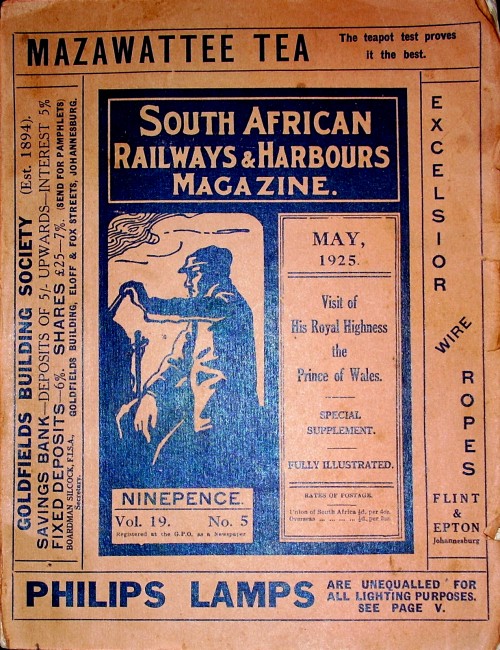 May, 1925, Volume 19, number 5, incl.special supplement , Visit of His Royal Highness the Prince of Wales, illustrated with photographic images, 146 pages excluding advertisment and staff changes, coated paper between card , 185 x240mm, wear and tear to margins of card, internally: very good.