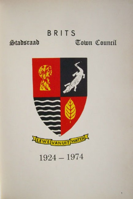 1)Hickey, W.A.(Compiler): \"Gedenkalbum - Souvenir Album - Brits 1924-1974.\" The bulk of the text is in Afrikaans. Original dark green simulated leather boards with gilt titling on the spine and the upper board. Signed by the mayor. 104 pages, profusely illustrated in both full colour and black and white. Published by Brits Drukkery, Brits. A few signs of use, but overall a nice clean copy.