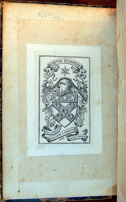 This particular book is unique in that it was presented, with an accompanying note, to Major William Jardine (02/12/1865 - 26/02/1948), a pioneer Africana book collector of his day. Maj.Jardine was often consulted with by Sir Ernest Oppenheimer on matters concerning collectable Africana and the construction of the Brenthurst Library. They became personal friends.