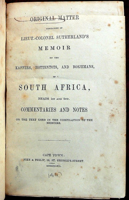 A voluminous but valuable compilation based on Moodie's Records and the works of many of the early writers on South African matters.[Mendelssohn's South African Bibliography].