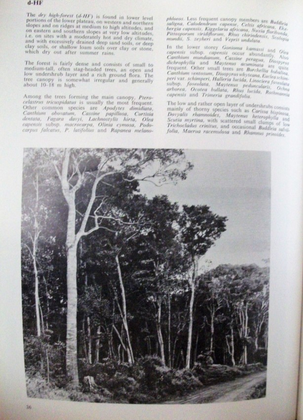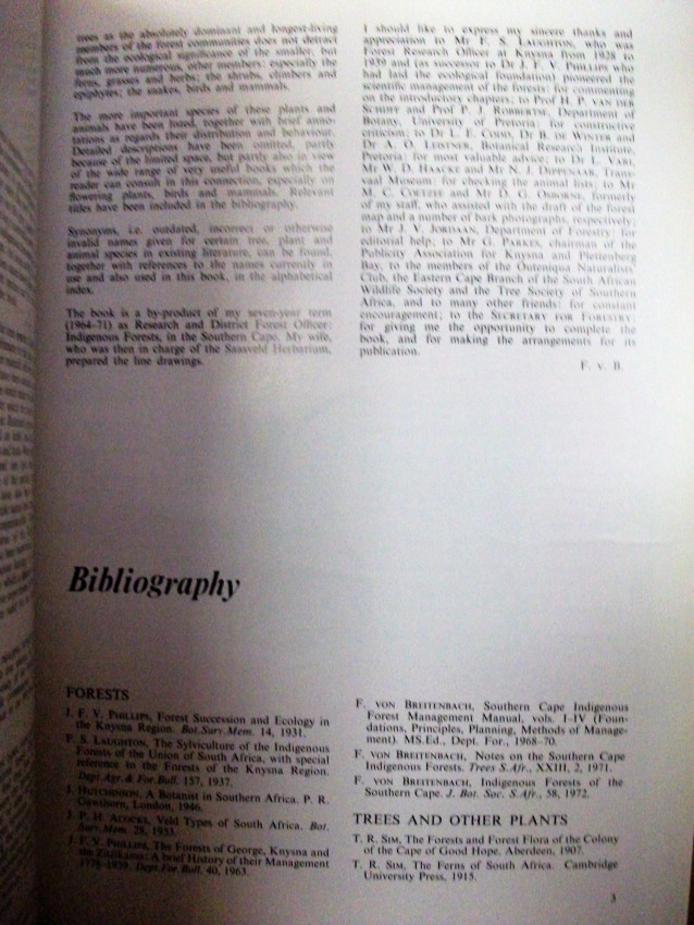 The contents are divided into four sections: introduction, bibliography and map; the forests; plants and animals; and, the largest section, the trees (or, more correctly, woody plants) - some one hundred of them, listed, described and illustrated in the order of the National List of [968] Trees (1966).