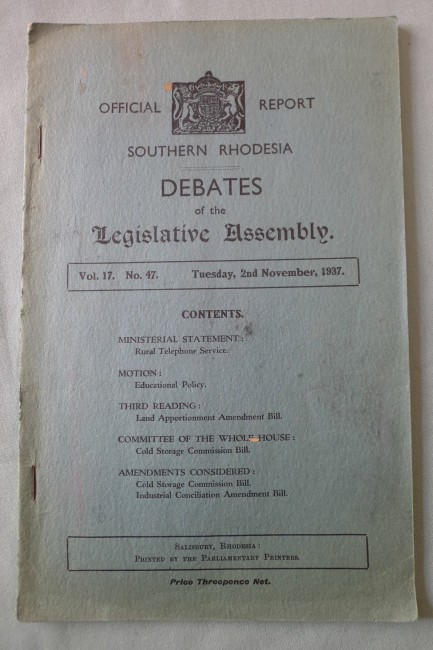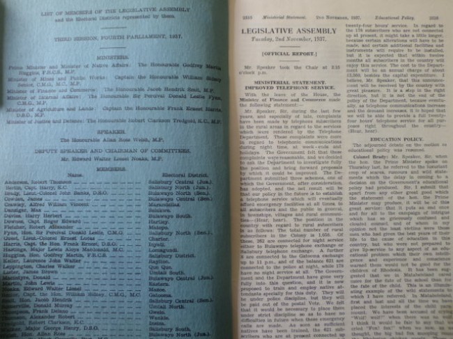 The day's main business was a debate on educational policy. The document is otherwise interesting for the composition of the Legislative Assembly and its six ministers.