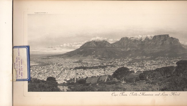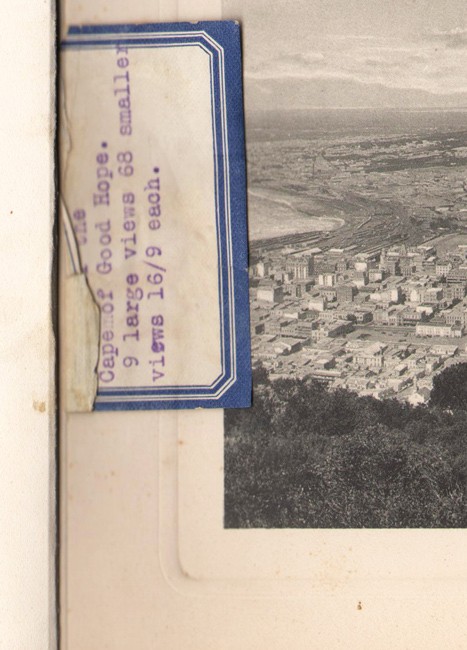 Variants of this album appear in A South African Bibliography, volume I and the Supplement (volume V) with different bindings and selections of photographs. The listing in the Supplement, page 57 comments, \'Several albums containing the same text and varied selections of plates were published by the firm G.B. & Co. George Budricks appears as a \'picture framer and dealer\' in Juta\'s Directory of Cape Town from 1897 onwards, but only in 1910 is the firm listed at G. Budricks & Co., fine art publisher and manufacturer, P.O. Box 1018.\'