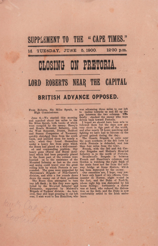 Supplements to the Cape Times 31 August 1899 – 5 June 1900.