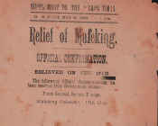 21 items all age toned and frayed at the edges, specially published to mark an important event during the Anglo Boer War, housed in a card folder with a handwritten title on the cover.