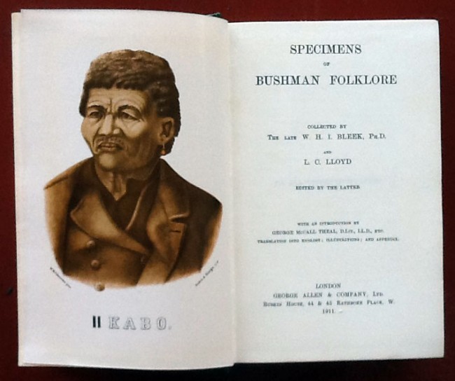 Facsimile reprint of the 1911 edition. Limited to 750 copies, this is no.441. xl, 468p. 50 illustrations. Previous owner's name on ffep. Green boards,gilt lettering to spine. A very clean copy of this important work on the mythology, fables, legends and poetry, and the natural and personal history of the Bushmen.