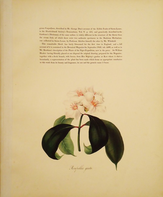 This scarce floral album was produced in a very small edition. The list of subscribers, headed by Queen Victoria, consists of only 103 names who ordered 110 copies. The fine quality paper was specially made for the publication and the illustrations were lithographed by P. Gauci. The volume is dedicated to the Swedish botanist D. Wallich who took the original paintings to England and showed them to Sir William Hooker at Kew who, much struck by their beauty and accuracy, arranged for their publication.