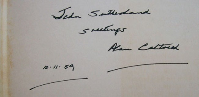 A.P. Cartwright inscribed this copy to John Sutherland, dated it 10.11.59 and signed it with his pseudonym, Alan Cattrick. Original dust jacket. Original green boards with red titling on the spine and the upper board. 223 pages and 18 illustrations. CONDITION DETAILS: The dust cover does have signs of wear: The head and tail of the spine are chipped, edge wear, etc. The slight toning, or browning of the pages is common for this title, but in the case of this book, it is greater than average, probably because it was kept in a humid climate. See images.