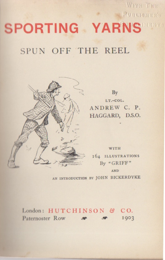 An entertaining blend of worldwide experiences including hunting lion in Abyssinia; moose, bighorn sheep, and wolves in Canada; ducks in Japan; fishing for salmon in Newfoundland; fishing in the Middle East (Aden); fishing the Grand Cascapedia; adventures in India, etc. Frontis plate plus numerous text illustrations. Green cloth with gilt angler vignette and titles on upper board, gilt titles and sporting motif on spine. Tiny split to spine head. Original end papers firm and tight.