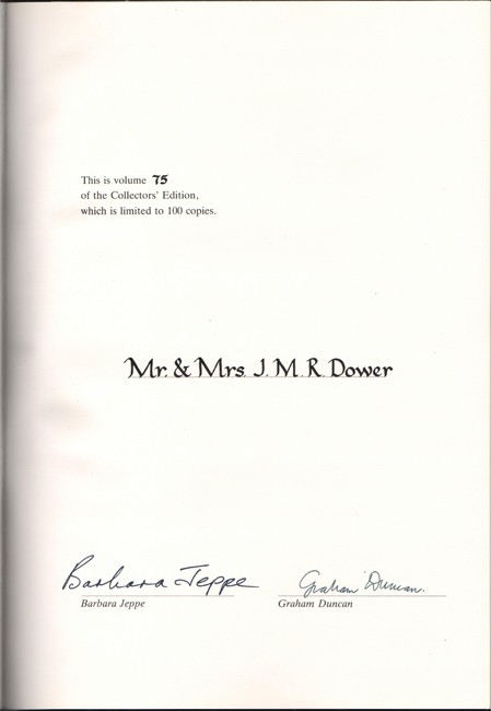 Collectors’ Edition: This is volume 75 of the Collectors’ Edition which is limited to 100 copies. Signed by the Barbara Jeppe and Graham Duncan.
