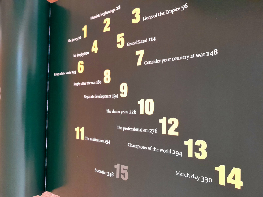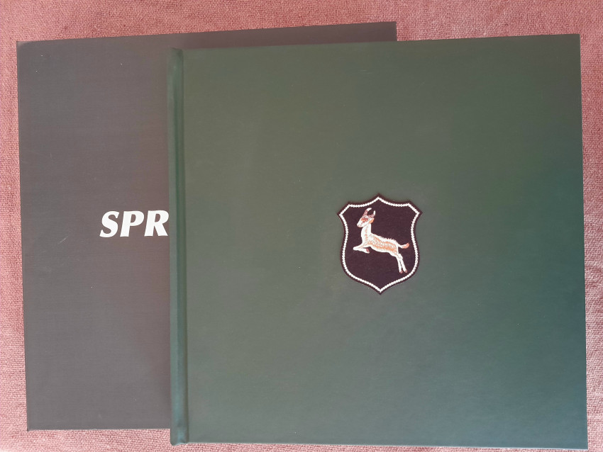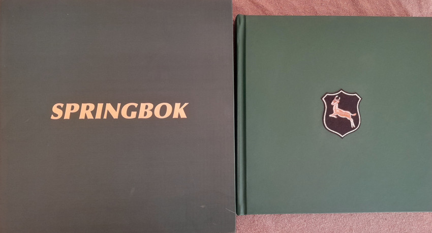 The Official Springbok Midi edition, 360 pages (15 chapters), bound in bonded leather and presented in a cloth covered clam shell with gilt lettering on front and spine. A cloth badge of the 1906 Springbok appears on the front cover.