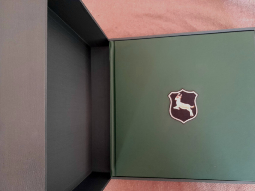 A large (42×43cm), and heavy (11 kilograms) set. The book is in fine condition, light scratches on the box.