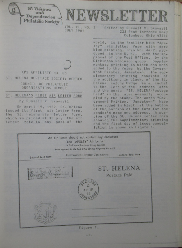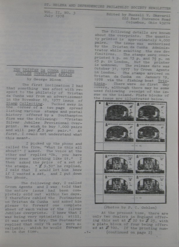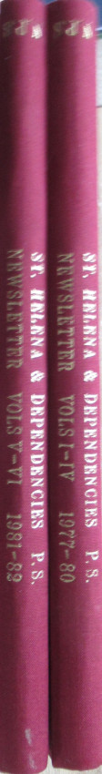 Hardback bound copies with deep red cloth with gilt lettering to spines. St. Helena and Dependencies Philatelic Society Newsletters. Saint Helena Study Group. Edited by Russell V.Skavaril- 222 East Torrence Road, Columbus , Ohio 43214.