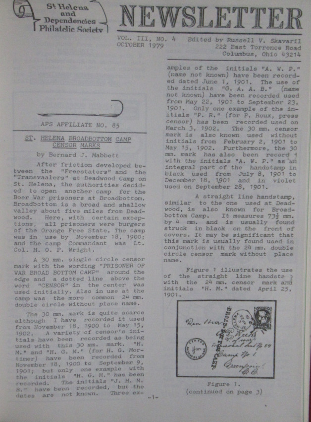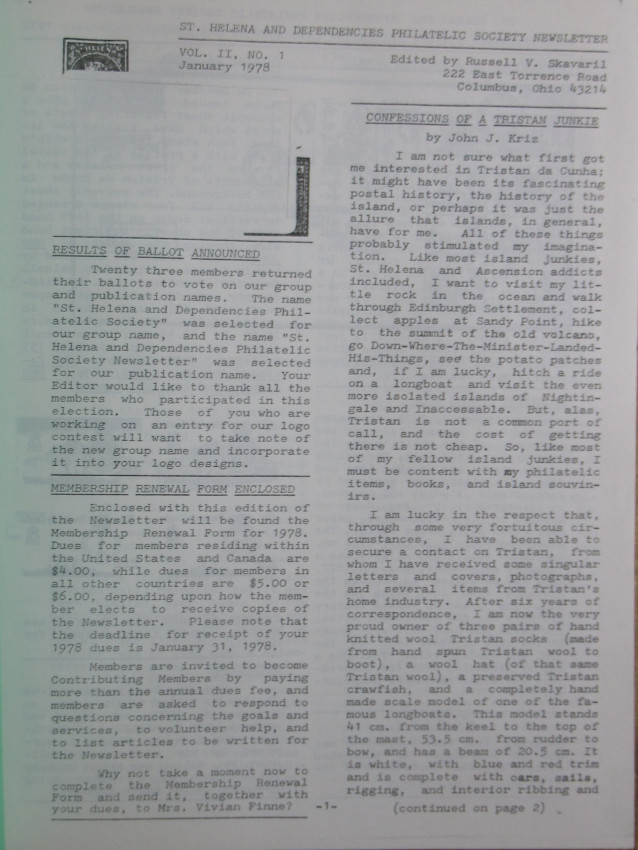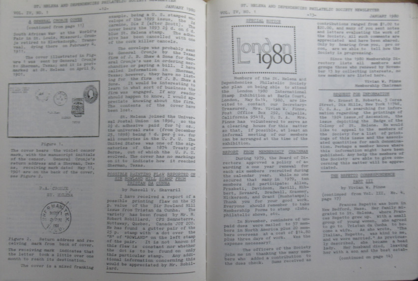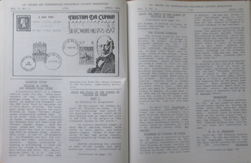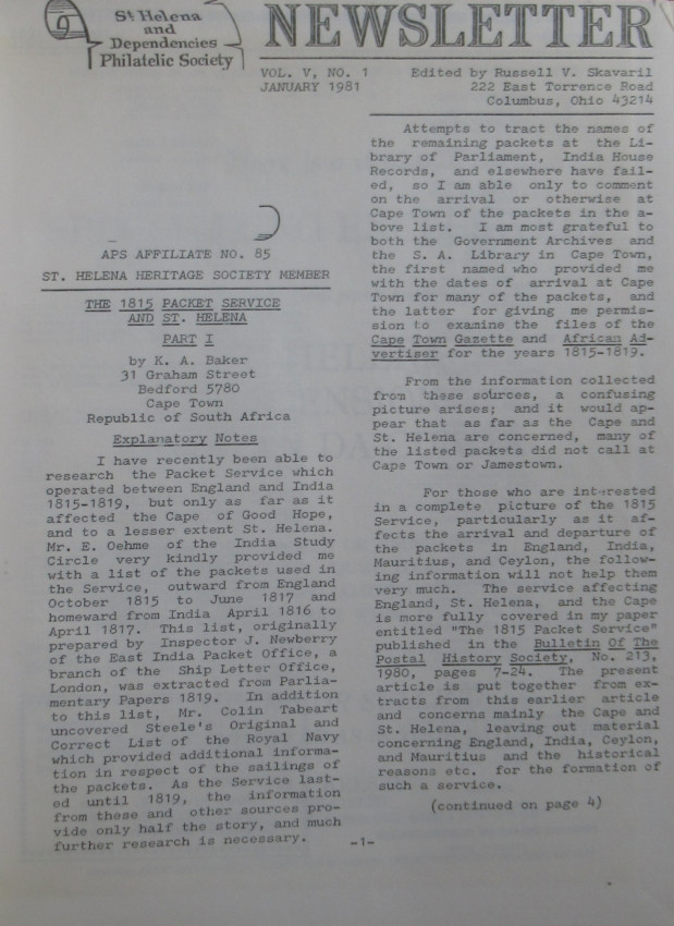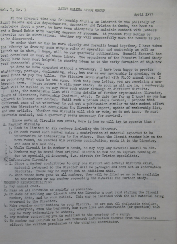 Saint Helena Study Group Vol 5, No 1 January 1981- Vol VI, No 4 October 1982. With supporting reproductions, tables, data and information etc.