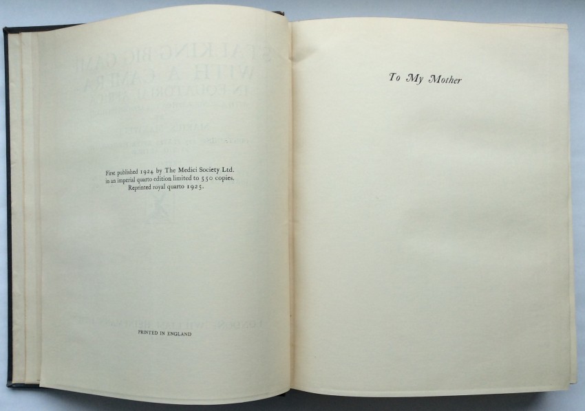 Stalking Big Game with a Camera in Equatorial Africa, with a monograph on the African elephant by ... Maxwell containing 113 [sic.] plates after photographs by the author preface by Sir Sidney F. Harmer.