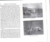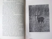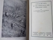 "This book has been written for the man of moderate means, and with the intention of showing that the camera and the rifle are not incompatible companions of a hunting trip. The telephotos of living animals, not one of which has been taken from a hide, are intended to give some idea of the country which they inhabit and the circumstances under which a sportsman is likely to see them; also to draw attention to the very interesting forms of animal life to be met with round the camp and on the march. Many of these photographs have appeared in the Field, Game and Gun, The Illustrated Weekly of India." Deer of various sorts, bears, wild sheep and goats in the northern states of India and what is now Pakistan. Several binding variations are known including dark blue cloth and mid blue-green cloth, some are titled in black whilst others are titled in gilt. This copy is the mid blue-green cloth with black titles. "[The author] provides chapters on various game to be stalked, how to stalk and where to stalk. While most of the text concerns a how-to approach, the author does include brief vignettes of his own experiences hunting goral, bear, tiger, barasingh, and other species." (Czech). .