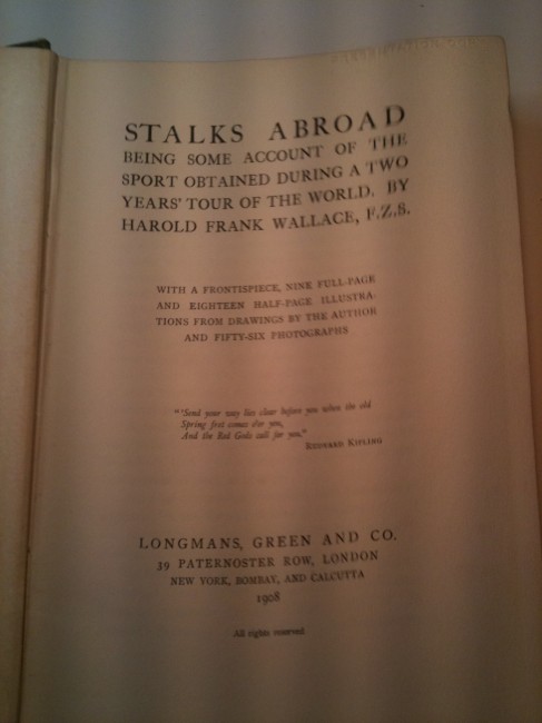 Frank, and his wife Elizabeth who I knew well, had hunted Big Game all over the world and their collection of trophies, one of the finest in Europe is still displayed in the ancient Tithe Barn next to the Hall.Frank eventually became disillusioned with hunting and turned his hand to drawing and painting the animals, he was a fine artist and his drawings illustrate several Big Game hunting books Little Wyrley Hall remains in the family.\"