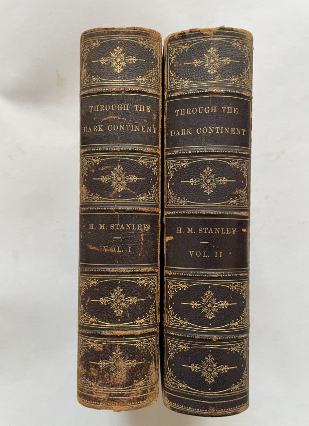 New York: Harper & Brothers, 1878. First American Edition. Octavo. 2 volume set.522 and 566pp., with all ten maps present which includie the two large maps in pockets. and 150 wood cuts all in fine condition with the full page illustrations with tissue guards. Perhaps best known as the intrepid adventurer who located the missing explorer David Livingstone in equatorial Africa in 1871.