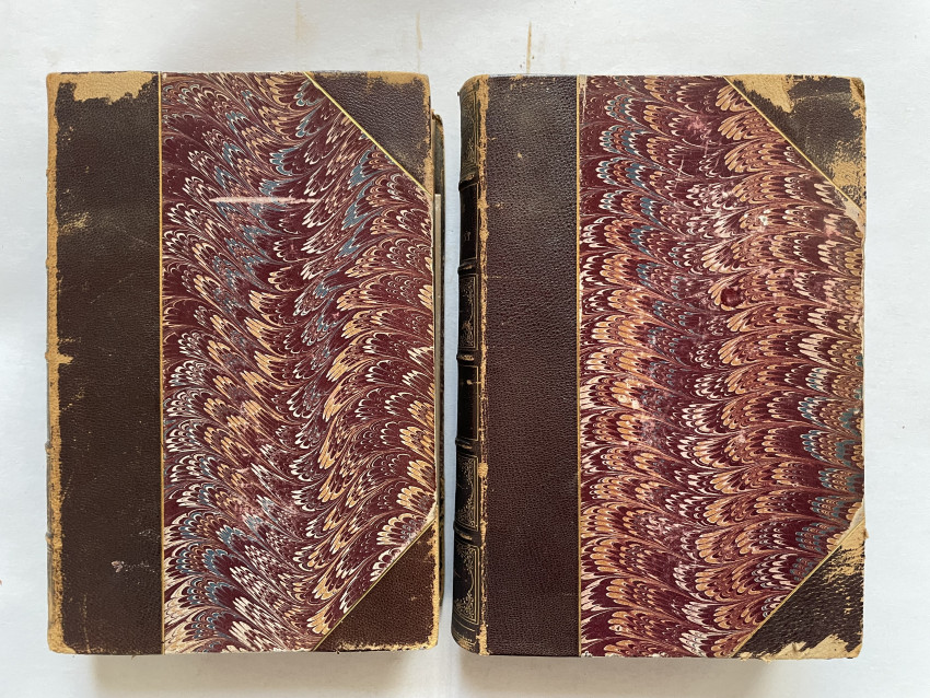 A good set bound in 3/4 brown morocco over marbled paper covered boards, raised bands with compartments lettered and decorated in gilt, all edge marbled with matching endpapers.
