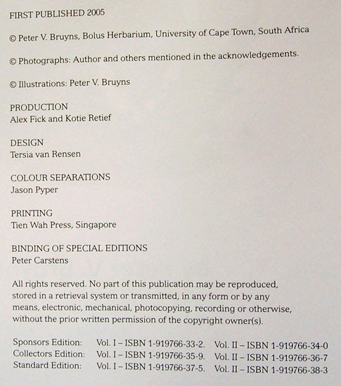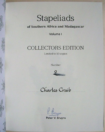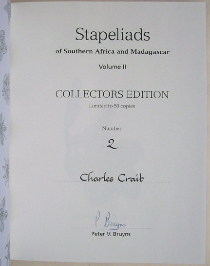 Complete 2 volume set. Copy number 2 of the Collectors' Edition Limited to 50 copies. This is an association copy from the library of Charles Craib, the well known botanical author of "Grass Aloes in the South African Veld", etc.