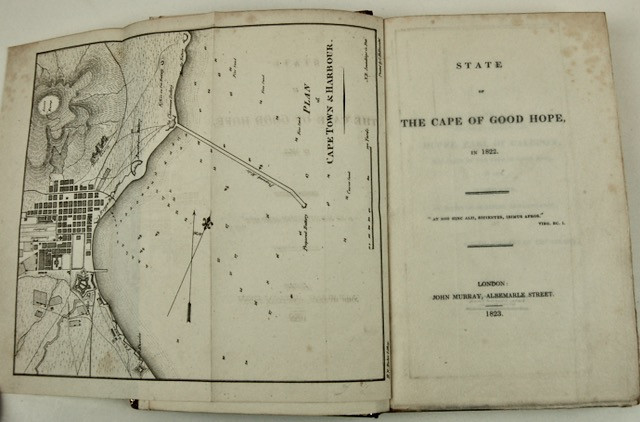 London: John Murray, 1823. First edition (pp. viii, 377). Octavo (23 cm) in full polished maroon calf, fine gilt titles and decoration, t.e.g., gilt decorated marbled endpapers; two folding maps. Lightly sun-faded at an edge. “The volume was written anonymously under the signature of ‘A Civil Servant of the Colony’, and it is claimed that it is 'a plain narrative of whatever may have attracted general attention', whilst the editor, Mr. H.T. Colebrook, states in his Preface, 'I have inserted brief notes at the foot of the page; and subjoin a few annotations on topics of interest, upon which I am desirous of delivering my own sentiments at greater length.’ The author, a public official, had opportunities of inspecting Government papers, estimates, and statistics, and with regard to these matters, the volume may be taken to accurately represent the position of the Cape colony at this period. Full particulars are given with reference to the system of Government, Courts of Law, and Burgher Senate, the 'enregisterment of slaves', together with notes upon agriculture, viticulture, whale-fishing, &c. &c. There is an interesting description of Cape Town, and 'of the manners, customs, and habits of its people'. the remarks are by no means uniformly complimentary to the Dutch inhabitants, and reflect in a curious light the somewhat primitive state of the majority of the population” (Mendelssohn). Near Fine in a splendid bespoke binding.