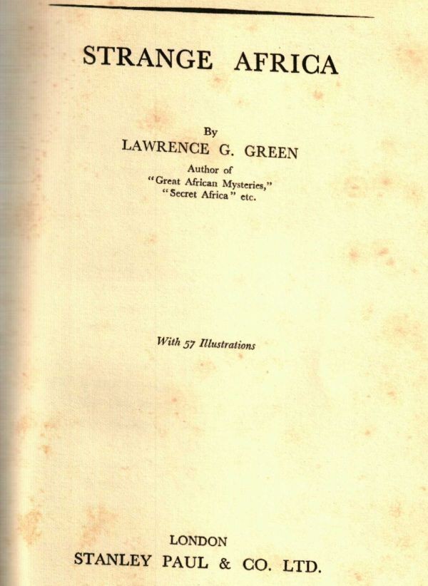 One of Lawrence Green's scarce 1st editions published in pre-war U.K. 287 pages of text and black and white illustrations.