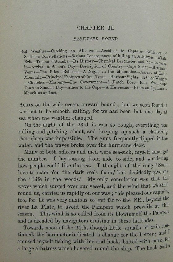Cape of Good Hope in 1866 (pp. 35 - 48); and encounters with cyclones.
