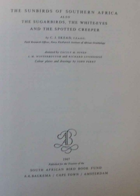 Sunbirds of Southern Africa, also Sugarbirds, White Eyes and the Spotted Creeper-Profusely illustrated/With gramaphone record.