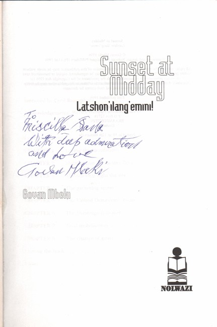 Presentation inscription on the half title page reads, ‘To Priscilla Jana, with deep admiration and love, Govan Mbeki.’