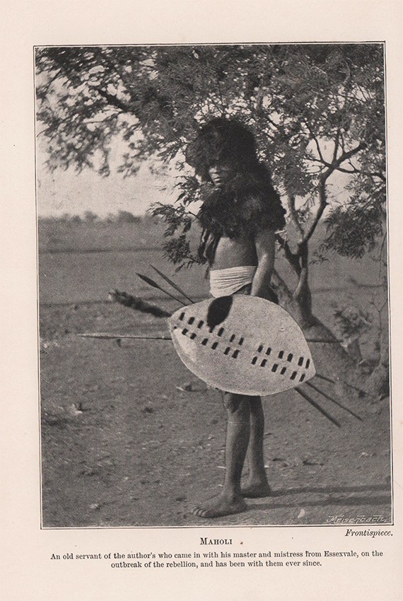 290 pages, frontispiece of Maholi, folding map, 9 plates, 6 illustrations in the text, original brown cloth, simply repaired with a darker brown cloth strip on the spine, distinctive Rowland Ward zebra skin patterned endpapers, water marks on upper cover, edges uncut, light foxing on the page edges, a good copy.