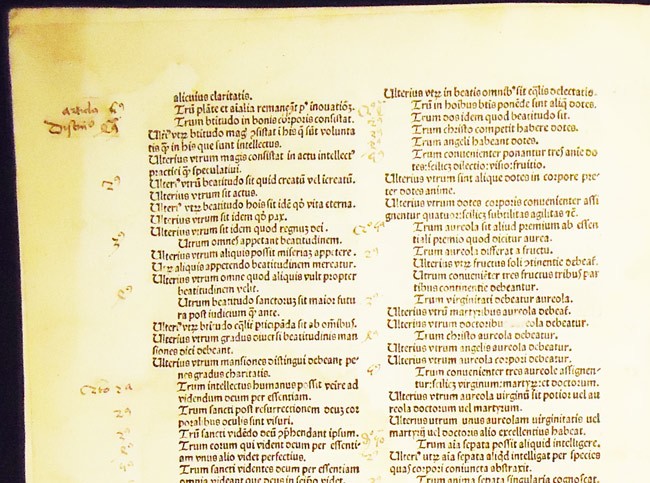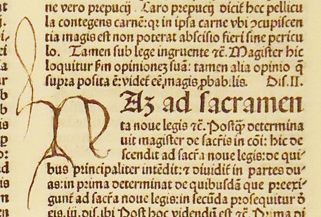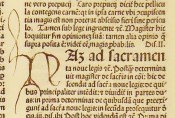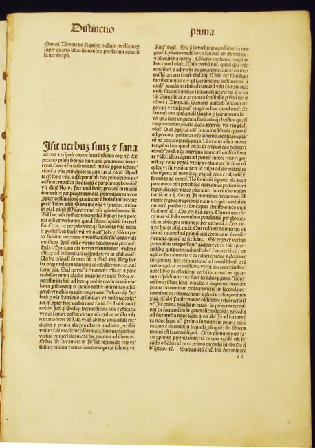 The Sententiae - Sentences of Peter Lombard was the standard theological reference work of its time. And Sentences were the considered judgments and opinions of experts on questions of faith and dogma, which Lombard had collected and classified in four parts – the fourth dealing with the sacraments. The individual topics - in each part were called and numbered as so many distinctions. This work was Aquinas' thesis for his master's degree in theology, a discussion and evaluation of earlier opinions.