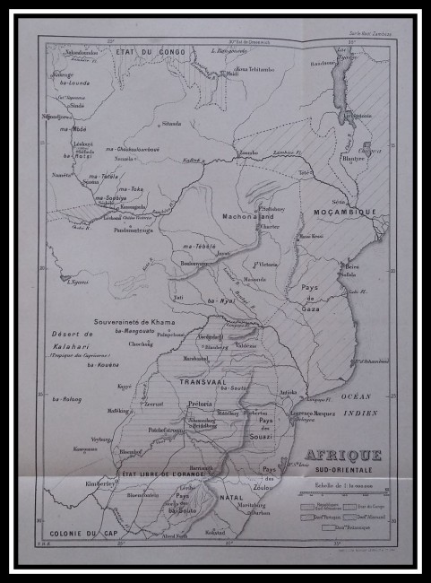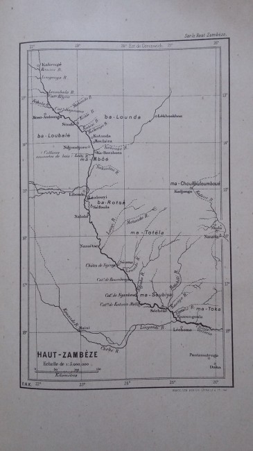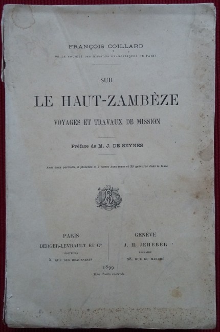 "Sur le haut ZAMBEZE. Voyages et travaux de mission. Preface de M. J. De Seynes. Avec deux portraits, 6 planches et 2 cartes hors texte et 25 gravures dans le texte."; Paperback; Collation complete - XXIX + 694 pages; Text in French; Paperback covers with little wetting and light foxing. Spine with tear to the top. Text block/pages complete and in very good condition, with occasional light foxing and yellowing. Some pages are untrimmed or with deckle edges.