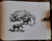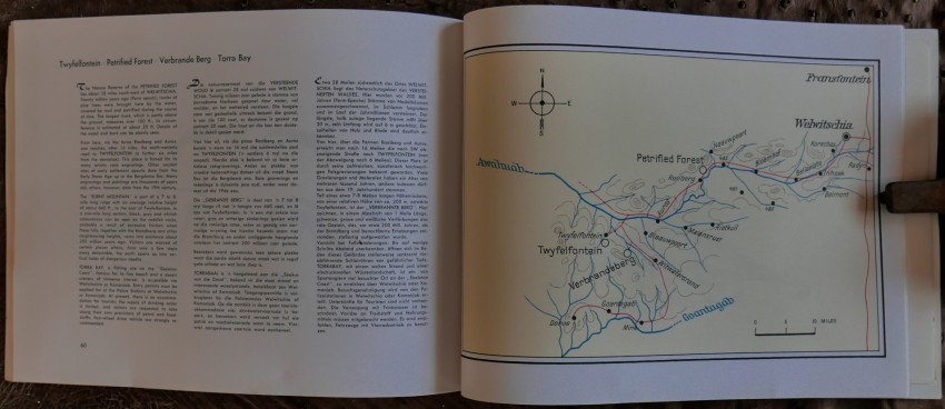 72pp. Softcover. Contents include several full colour maps of which two are fold-outs. A rear pocket doubles as a distance calculater and contains a larger road-map. The text is flavoured with several b/w charcoal/pen sketches throughout.