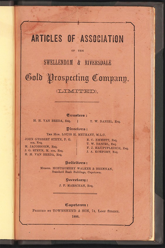 Trustees: H.H. van Breda, T.W. Daniels. Directors: Louis H. Meurant, John Steyn, M. Jacobsohn, J.G.Steyn, H.H.van Breda, E.C. Emmett, T.W. Daniels, F.J. Hauptfleisch, J.A. Koefort.