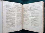 Condition of contents: General toning. Occasional marginal notes or scribbles. Leaves E1-G1 of the first set of tables, and 3T2 and 3U1 from the second set of tables torn without loss from the lower blank margin into the text. Occasional light worming.