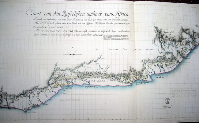 In October 1950 a cache of unknown eighteenth century Cape Colony maps was discovered, that is the cartographic material achieved during governor C.J. van der Graaff’s tenure in the Cape Colony, and known as the van der Graaff collection. The governor having sprinted them away to Holland at the end of the Dutch occupation, well knowing their military value to the British.