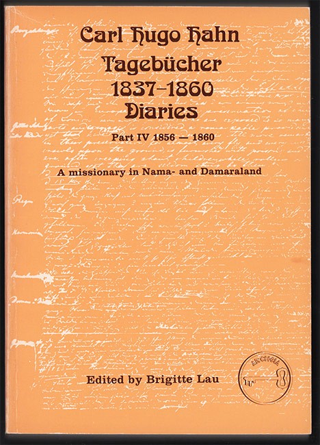 From WIKIPEDIA: Hahn arrived in Cape Town on 13 October 1841. His orders were to bring Christianity to the Nama and the Herero in South-West Africa—not an easy task considering that both tribes were enemies at that time. He travelled to Windhoek in 1842 and was well received by Jonker Afrikaner, Captain of the Orlam Afrikaner tribe residing there. When in 1844 Wesleyan missionaries arrived at the invitation of Jonker Afrikaner, Hahn and his colleague Franz Heinrich Kleinschmidt moved northwards into Damaraland in order to avoid conflict with them. Hahn and Kleinschmidt arrived at Otjikango on 31 October 1844. They named the place Barmen (today Gross Barmen) after the headquarters of the Rhenish Missionary Society in Germany and established the first Rhenish mission station to the Herero there.At that time Jonker Afrikaner oversaw the development of the road network in South-West Africa. Hahn and Kleinschmidt initiated the creation of a path from Windhoek to Barmen via Okahandja, and in 1850 this road, later known as Alter Baiweg (Old Bay Path), was extended via Otjimbingwe to Walvis Bay. This route served as an important trade connection between the coast and Windhoek until the end of the century.Their missionary work was not very successful, and Hahn visited Europe between 1853 and 1856 to gather support for his endeavors, which by then were considered futile by the Rhenish Missionary Society. He returned with the order to evangelize the people in Ovamboland but his expedition to the Ovambo in 1857 ended in a disaster, and the members barely escaped alive. Moreover, Gross Barmen was almost destroyed by then due to the skirmishes between Namas and Hereros. After the Herero defeated the Nama on many occasions, missionary work was continued. Hahn moved westwards to Otjimbingwe in 1863 and established a missionary station and a theological seminary there to educate indigenous missionaries. Five years later, an attack by the Nama ended his hitherto successful project. The Herero fled the settlement and gave up their Christian affiliations. In 1870 Hahn brokered a ten-year peace deal between Nama and Herero and convinced the Finnish Missionary Society to take over missionary work in Ovamboland. When the Rhenish Missionary Society began trading for profit and colonising, Hahn severed his ties with them in 1872 and relocated to the Cape Colony.For the next twelve years, Hahn served as pastor of the German Lutheran congregation in Cape Town. From 1882 until his retirement in 1884 he was the Cape Government's "Special Commissioner for the Walwich Bay Territory".