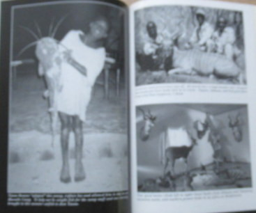 Dark green cloth with gilt blocking and map of Africa/Antelope Skull to upper board, and gilt lettering to spine.