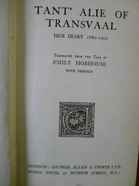 She had decided to translate and publish the diary because Tant' Alie " . . . much wished [that it] should be published for [her and other] children's children, desirous that future generations should know and avoid the cruelty of war".