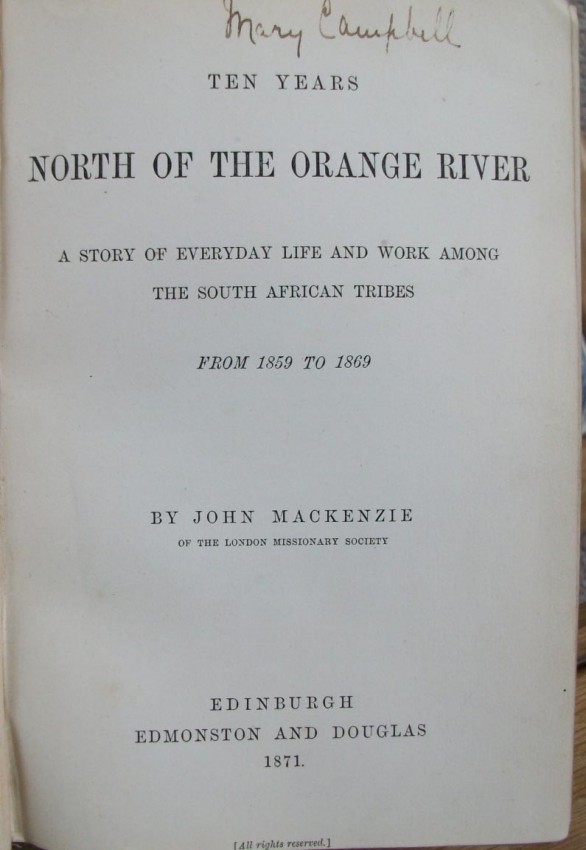 An account of Mr. Mackenzie's earlier missionary career in South Africa, embracing the narrative of his work in Kuruman, Taungs and Likatlong, with notes on the Orange Free State, the Transvaal, " Bushman Land," and Matabeleland, and on his visit to Moselekatze, together with an interesting description of the earliest days of the Diamond Fields.