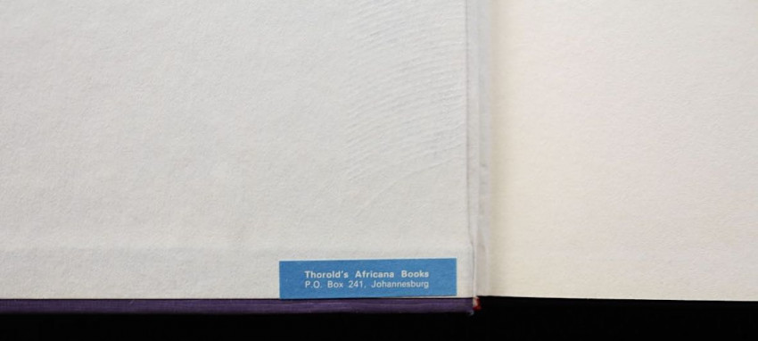Original Thorold's Bookseller's ticket on front paste down - their shop was located in Johannesburg for almost a century.