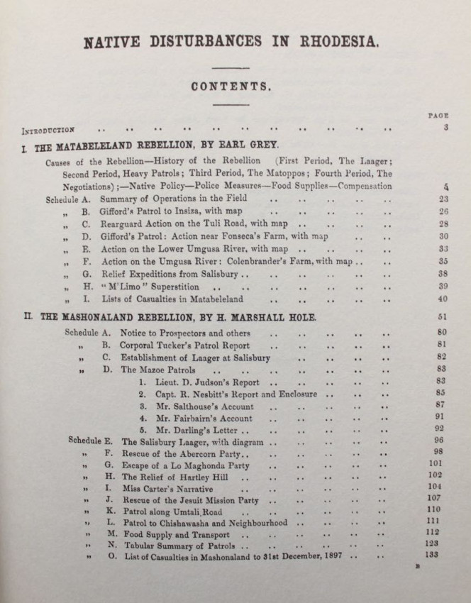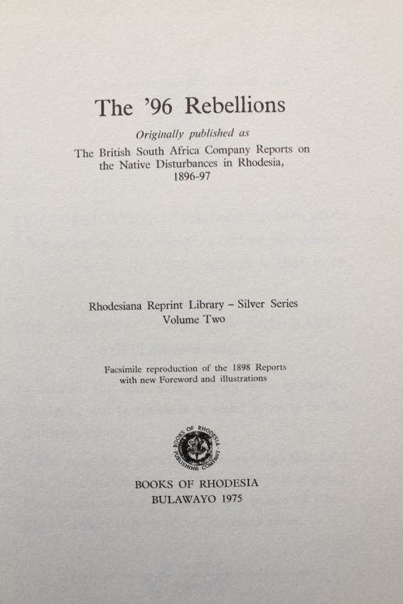"The '96 Rebellions, originally published as The British South Africa Company Reports on the Native Disturbances in Rhodesia, 1896-97".