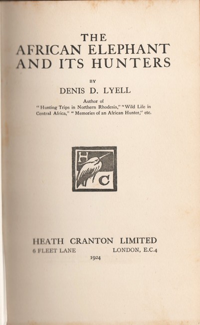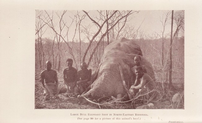 Czech (Dr Kenneth) An annotated Bibliography of African Big Game hunting Books, 1785 to 1950, page 174, 'This excellent book includes the author’s adventures hunting elephant in various parts of Rhodesia and Portuguese East Africa: "An elephant often screams when he comes for a hunter, but not always, for I have seen one come on without making a sound except with their feet as they rustled through the grass." Of additional interest, are his chapters on early elephant hunters, recent (ca. early 20th century) hunters and even a passage on hunters killed by big game.'