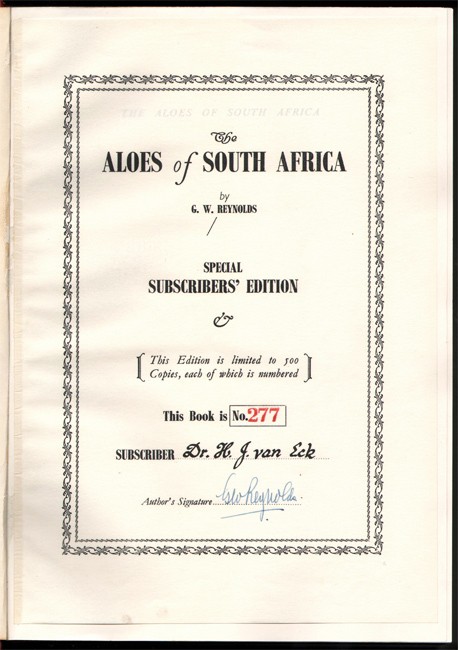 Published by the Trustees, The Aloes of South Africa Book Fund.