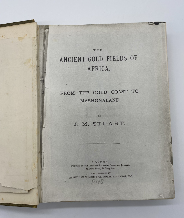 Photocopy reproduction title page. Pencil inscription to verso of f.f.e.p. stating that the 2 plates immediately following the title page are not in the South African Library's copy. Maps with tears to folds, but in tact. Mendelssohn notes that this is a "compilation containing considerable information respecting the gold fields of Rhodesia and the ancient workings...At the end of the volume will be found a curious chapter entitled "The Description of Africa" which was written three hundred years ago" (451-452).