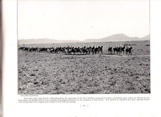 Deluxe edition of the pictorial record of the Boer War. 300+ photographs together with a 22 page 'Summary of the War' Original covers with gilt decoration to front cover and vignette in black of a cavalryman. Embossed endpapers. Slight wear to extremities of cover, and front hinge has been taped amateurishly, otherwise a very good copy of this uncommon pictorial work.