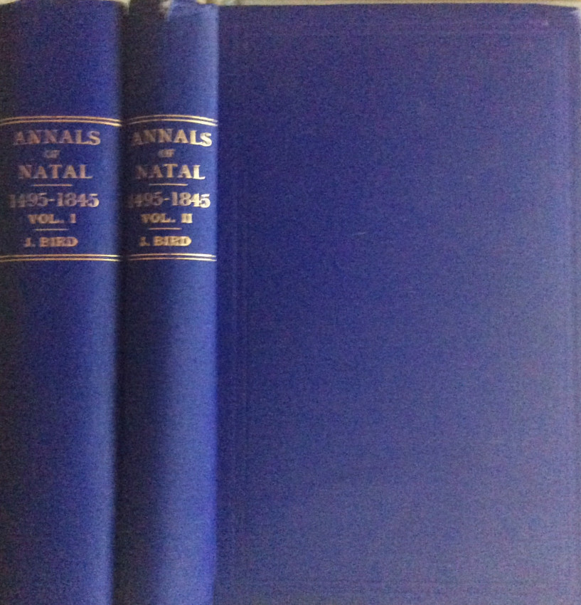 No jackets as published; full-bound in blue cloth-boards, blind rules to the upper boards, gilt rules and titles to the spines, plain endpapers; Vol 1 vi/xiv (index)/732 pp of prelims, Introductory Notes on the Compilation of the Annals of Natal AD 1497-1845, and Annals to 1842; Vol 2 iv/xv (index)/484 pp of prelims and Annals 1842 to 19 December 1845