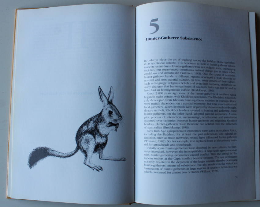 Liebenberg also discusses modern nature conservation and how tracking can allow an assessment of animals in an area. He quotes finding spoor of the spotted-necked otter on the Sabi River banks, when all academic works on the Kruger National Park indicate it is not present there, as it has never actually been seen! Liebenberg also delves into the aspect of hunting and trophy hunting, pointing out the boastfulness of the activity.
